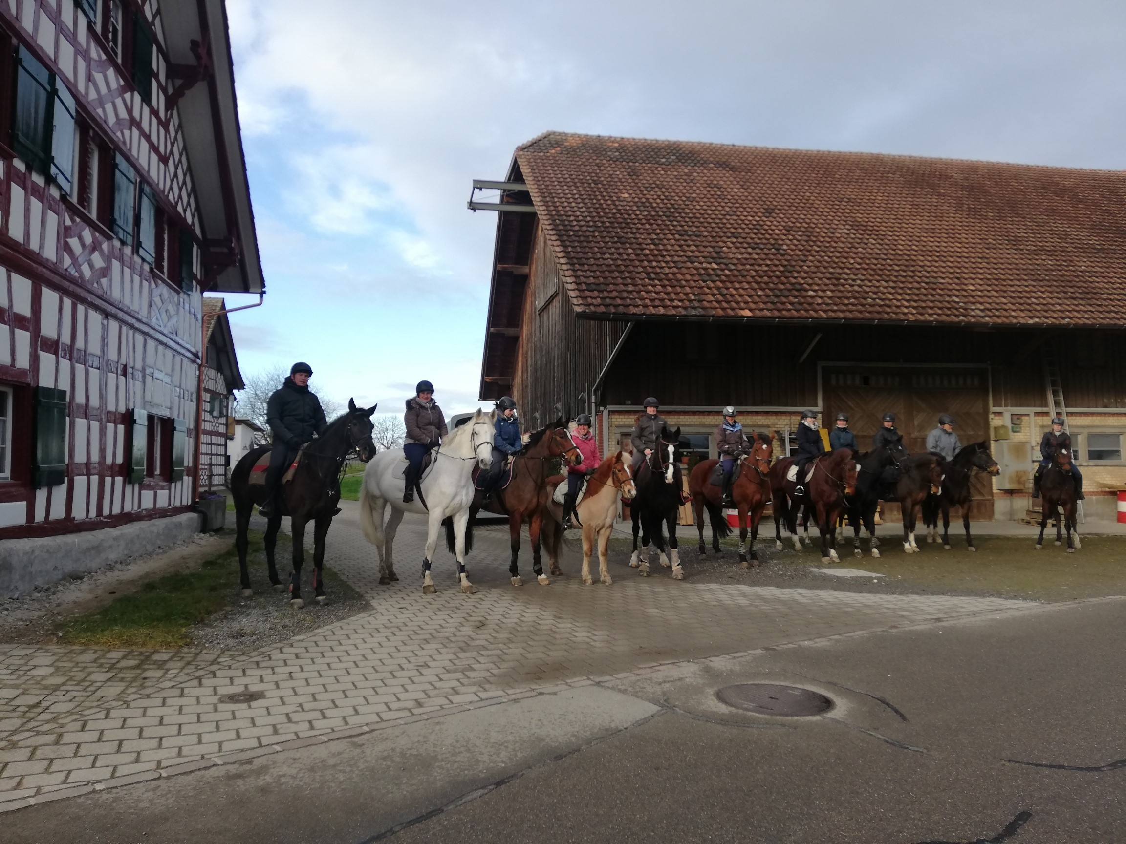 Gemeinsam sind auch wir ins neue Jahr gestartet. Hufgetrappel hörte man aus allen Richtungen. Besammlung zum diesjährigen Neujahrsritt war am Sonntag 9. Januar in Fetzisloh. Im Schritt und flottem Trab genossen wir die wärmenden Sonnenstrahlen und das herrliche Wetter mit unseren Reiterkameraden. Die Pferde zuhause abgesattelt und gefüttert trafen wir uns im Restaurant Winzelnberg zum köstlichen Mittagessen. Vielen Dank für die Organisation und am Winzeli-Team für die super Bewirtung.